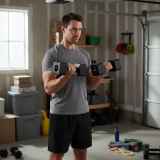 Mechanismus založený na segmentových, galvanizovaných železných vložkách umožňuje jediným stisknutím přidat nebo odebrat blok u obou činek. Změníš hmotnost od 1 do 2,5 kg na kus – bez přídavných kotoučů nebo uzávěrů.
